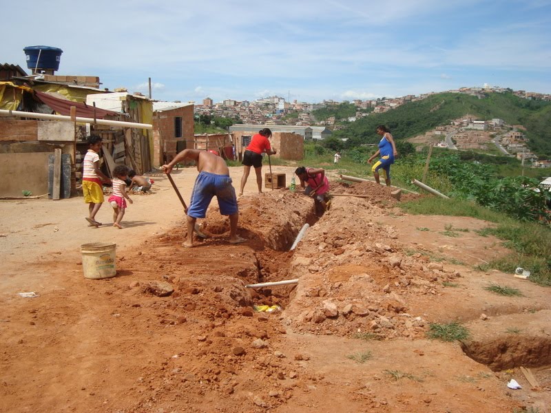 O trecho do esgoto da Rua B feito no dia 18/12/10 não teve prosseguimento. A solução adotada por cerca de 11 moradores foi direcionar o esgoto para o talvegue vizinho à ocupação. Os lotes da Rua A, que ainda não tinham se conectado à rede, direcionaram o esgoto para o talvegue e os demais continuam com a rede entupida, sem uma solução.
