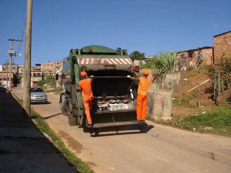 No início da visita, o grupo presenciou a coleta do lixo pelo caminhão da SLU na lixeira localizada na entrada da comunidade Irmã Dorothy 2.